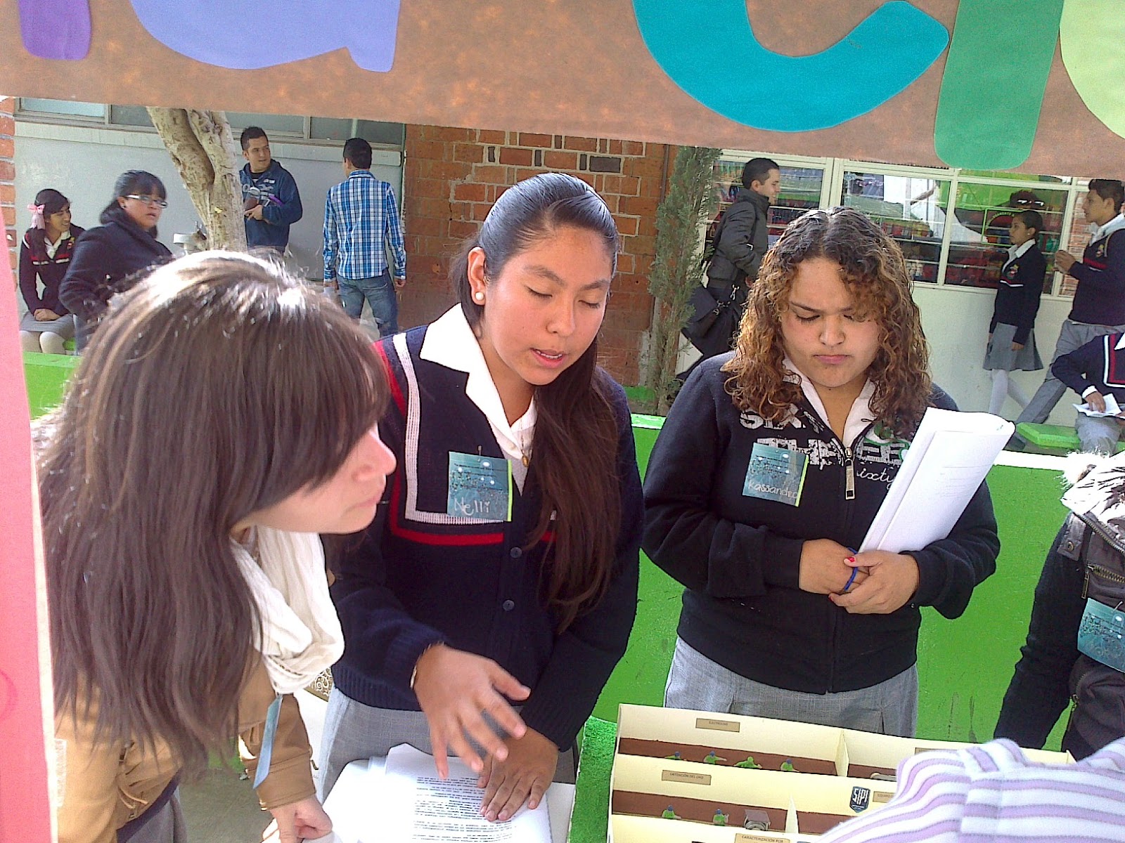| Jóvenes de Tercero presentando su trabajo a los docentes y Padres de familia. |